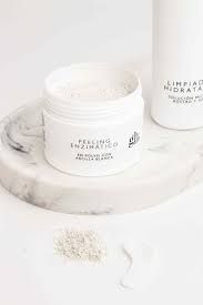 Peeling enzimático en polvo, formulado con 2 enzimas derivadas de frutas (papaya y piña) que se activan al contacto con el agua.
