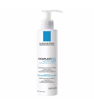 Cicaplast Lavant B5 de La Roche Posay es un gel espumante, calmante y purificante. Su fórmula espumosa ultra suave está diseñada para calmar y purificar sin secar la piel irritada o frágil, causada por la sequedad en adultos, niños y bebés. Está indicado para piel irritada o frágil a causa de sequedad. Cicaplast Lavant B5 contiene agentes antibacterianos: cobre, zinc y manganeso para limpiar la piel sin alterar su equilibrio natural. Su ingrediente activo, el pantenol al 5%, contribuye a la reparación de la piel. Además, tiene pH fisiológico, no pica los ojos, es libre de parabenos y de perfume. Resultado: limpia, purifica y calma la irritación de la piel.