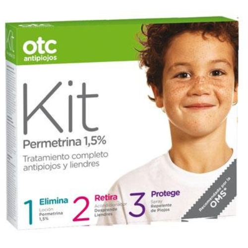 El OTC Kit 1,2,3 Permetrina es el nuevo tratamiento completo contra piojos y liendres. Gracias a su contenido en Permetrina, un activo pediculicida, este eficaz antiparasitario actúa bloqueando el sistema nervioso central de los piojos y, al penetrar en su interior, los intoxica. Su toxicidad es inocua para las personas y es apto para todo tipo de pieles, exceptuando aquellas con sensibilidad extrema. No contiene alcohol, y su delicada fórmula permite ser aplicada en niños mayores de 2 años, así como en mujeres embarazadas y en periodo de lactancia. Este kit contiene: 1. Loción Permetrina 1,5%: Efecto antiparasitario gracias a su composición a base de permetrina, un activo pediculicida recomendado por la OMS, que garantiza la máxima eficacia frente a piojos y liendres. Su fórmula sin alcohol, suave y eficaz, es apta para niños mayores de 2 años, mujeres embarazadas y en periodo de lactancia. 2. Acondicionador Desprende Liendres: Gracias a su contenido en ácido acético, permite retirar fácilmente los piojos y liendres. Además, gracias al pantenol y la vitamina E, favorece el desenredado, nutriendo, hidratando y aportando brillo al cabello. 3. Spray repelente de piojos: Ahuyenta los piojos y evita la reinfestación. Contiene N-acetil-N-butil-beta-alaninato de etilo, altamente seguro para su aplicación en niños mayores de 2 años.
