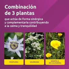 La valeriana ayuda a un efecto calmante en casos de irritabilidad. La amapola de California ayuda a tranquilizarse cuando hay estrés provocado por un elevado ritmo de vida, ayuda a la relajación y a mejorar la calidad del sueño natural. La pasiflora ayuda a conciliar el sueño.